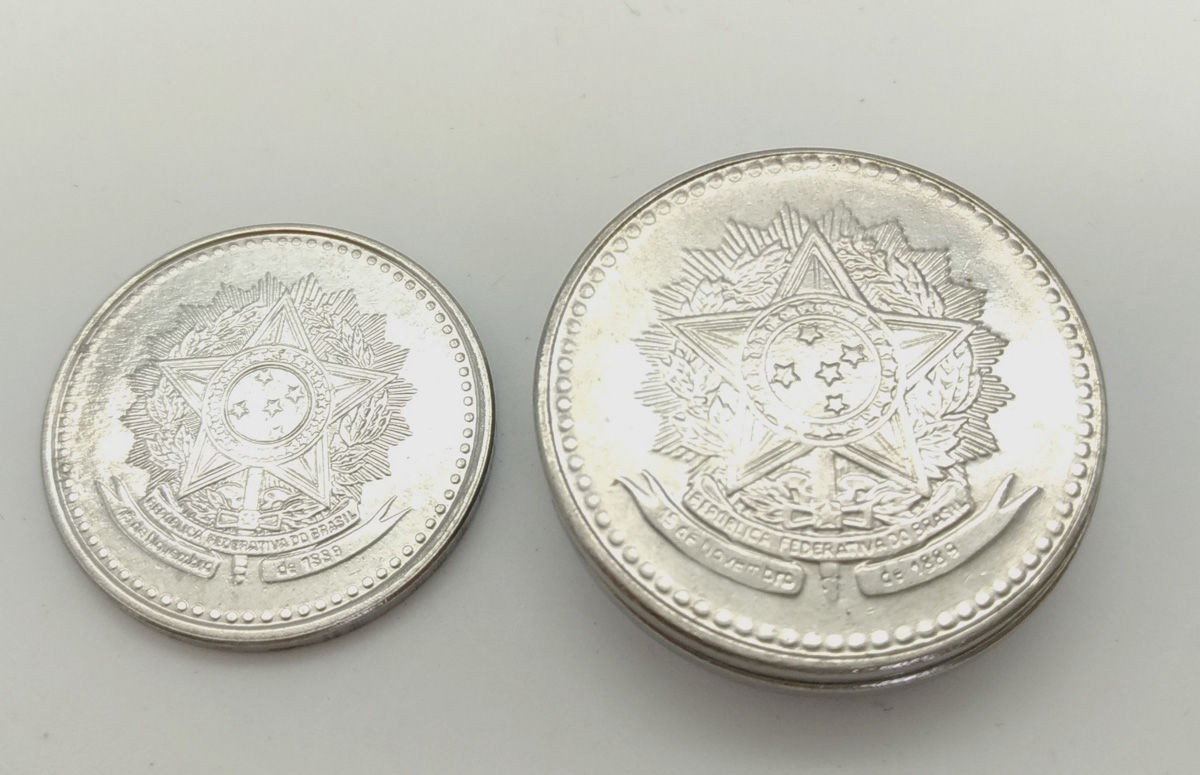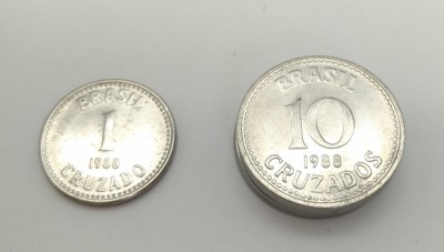 5 MOEDAS BRASILEIRAS: 4 DE 10 CRUZADOS (1988) E 1 DE 1 CRUZADO (1988).