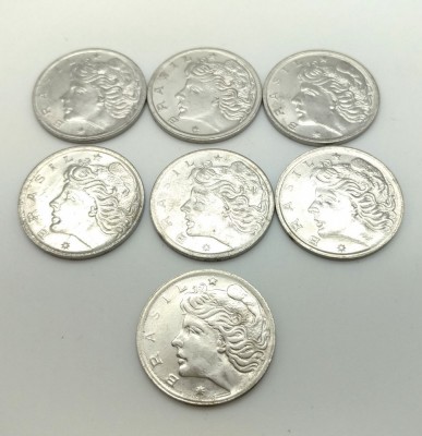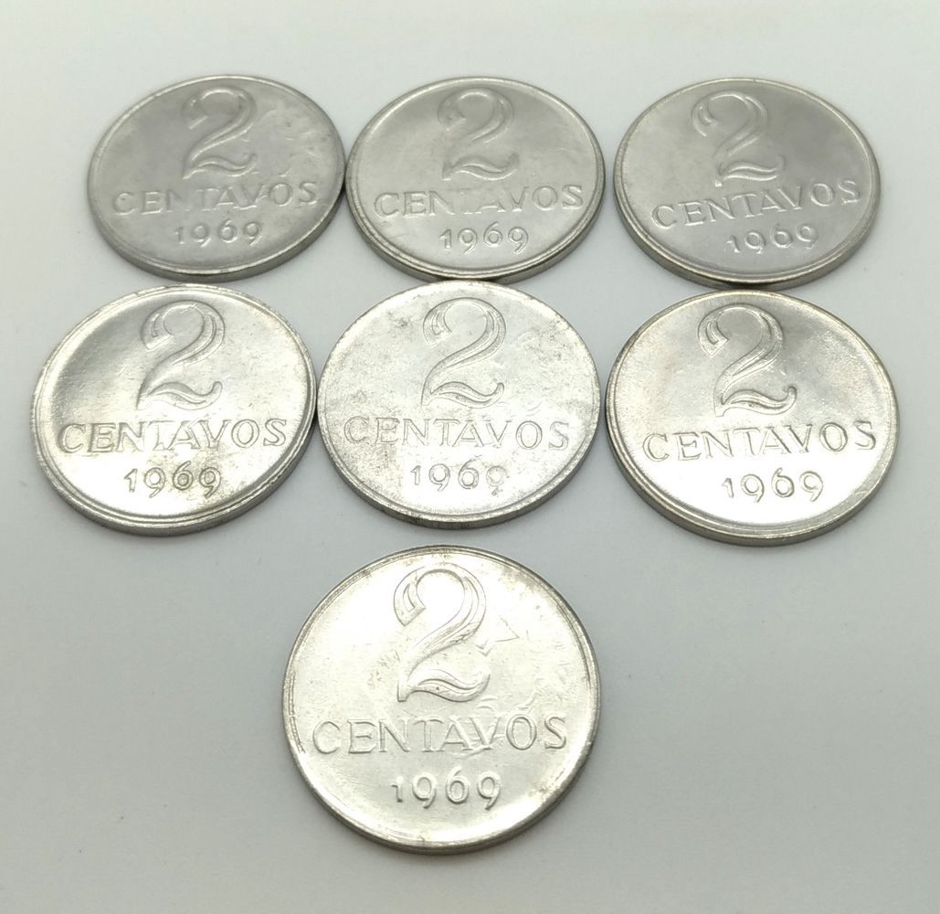 7 MOEDAS BRASILEIRAS DE 2 CENTAVOS (1969).
