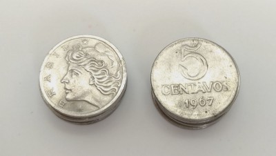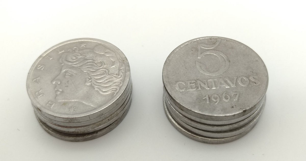 10 MOEDAS BRASILEIRAS DE 5 CENTAVOS (1967).