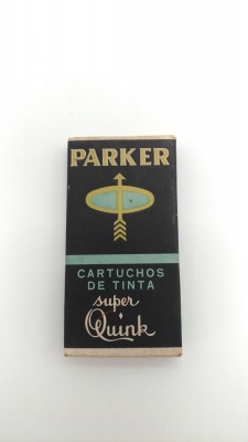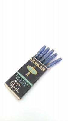 CAIXA COM 5 CARTUCHOS DE TINTA SUPER QUINK PARKER - AZUL LAVÁVEL. SEM USO.