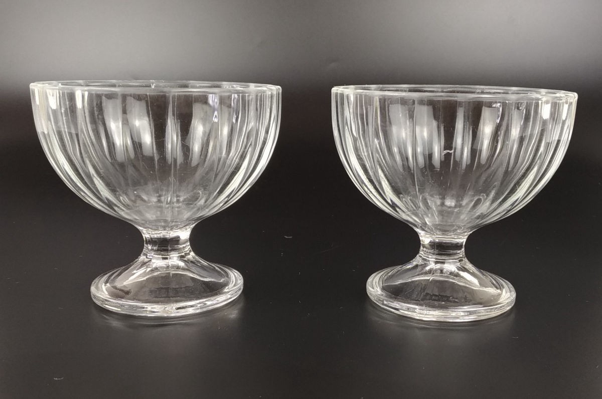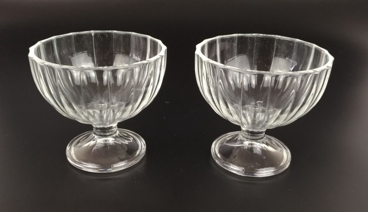PAR DE TAÇAS DE SOBREMESA EM VIDRO. ALT 9,5CM. PERFEITO ESTADO.