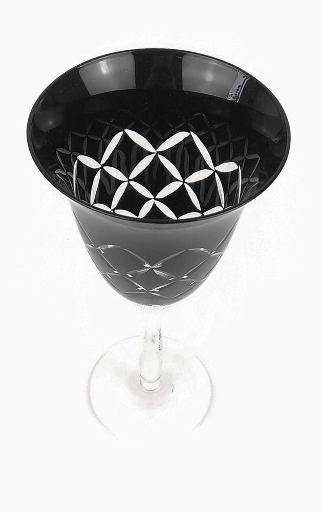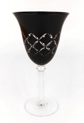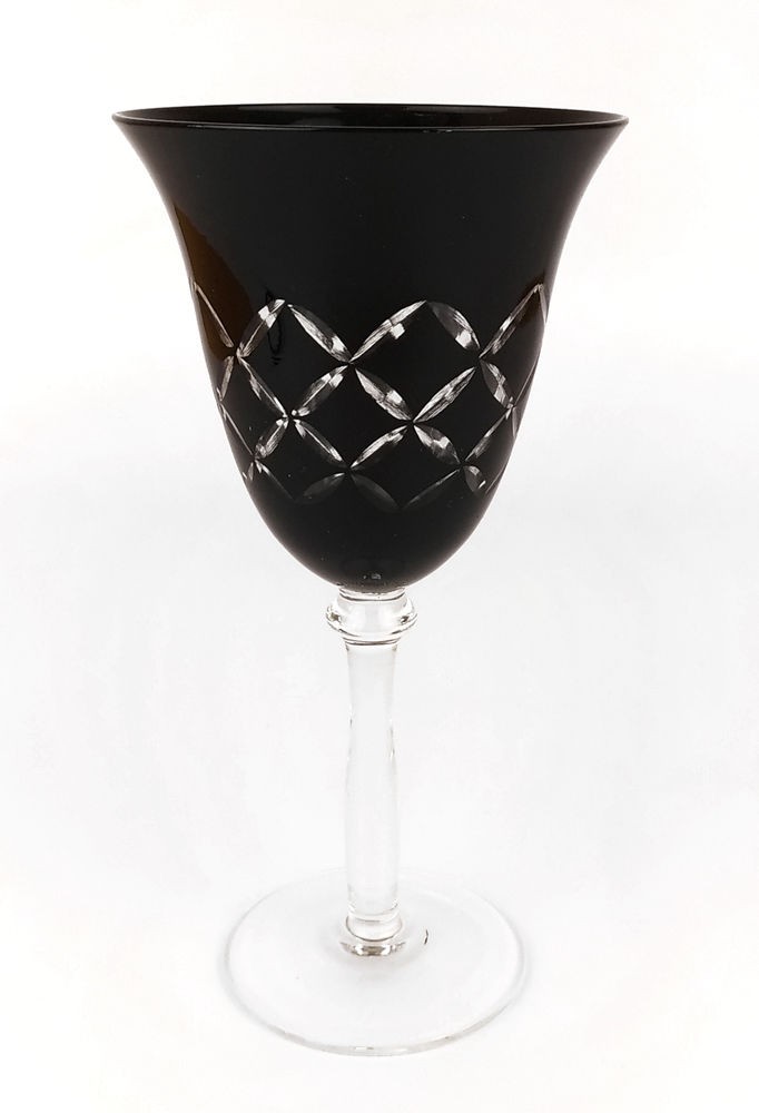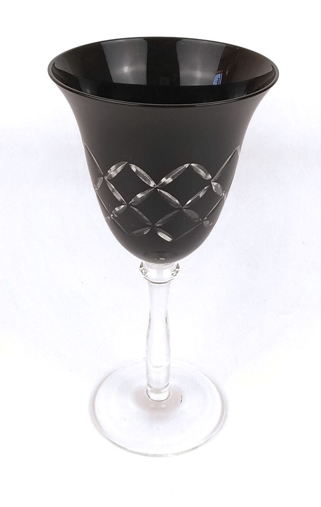BELA TAÇA EM VIDRO PRETO LAPIDADO. ALT 20CM. PERFEITO ESTADO.