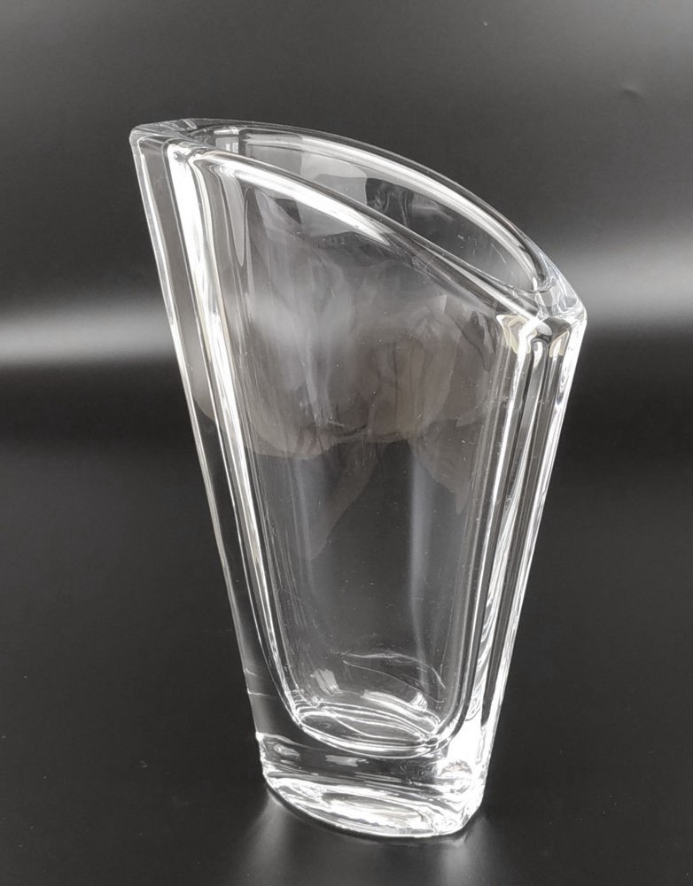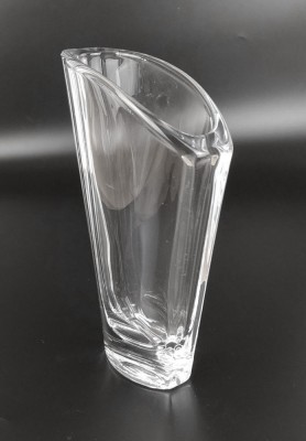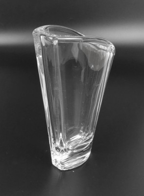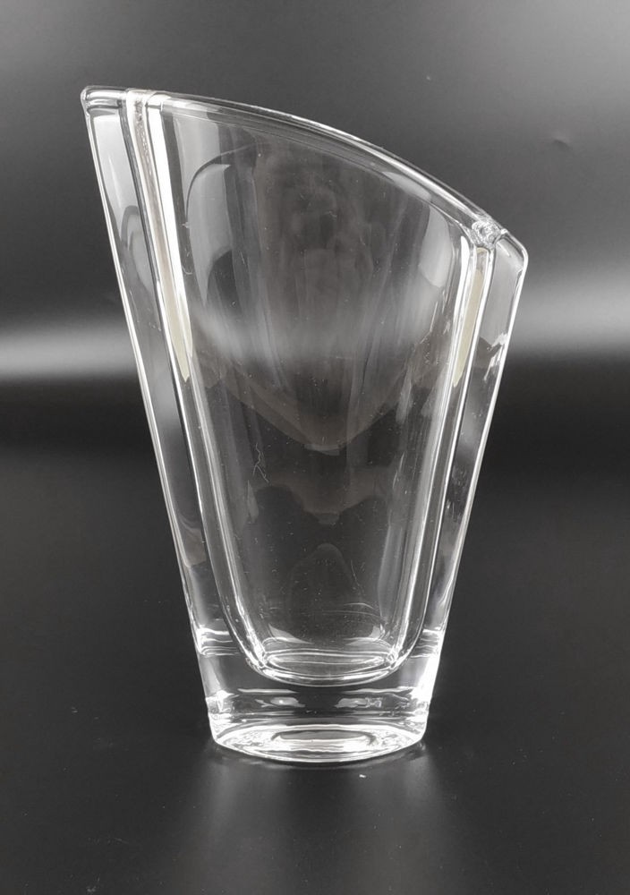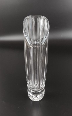 VASO ESTREITO EM CRISTAL ESPESSO, BOCAL EM CORTE ANGULAR. ALT 23CM. PERFEITO ESTADO.