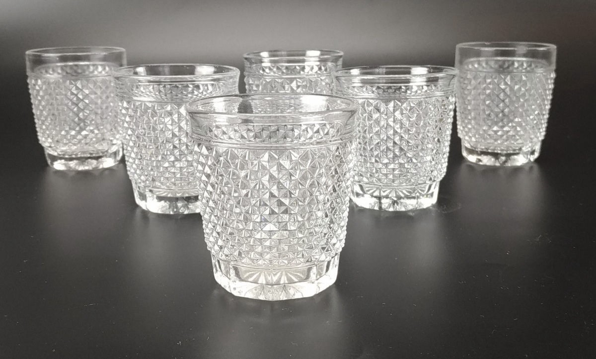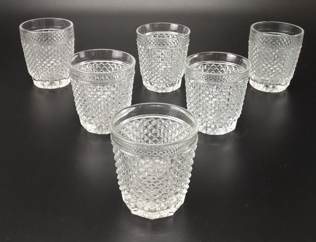 6 COPOS PEQUENOS EM BICO DE JACA TRANSPARENTE. ALT 7CM. PERFEITO ESTADO.