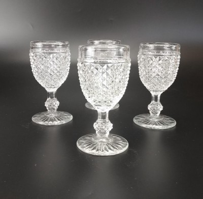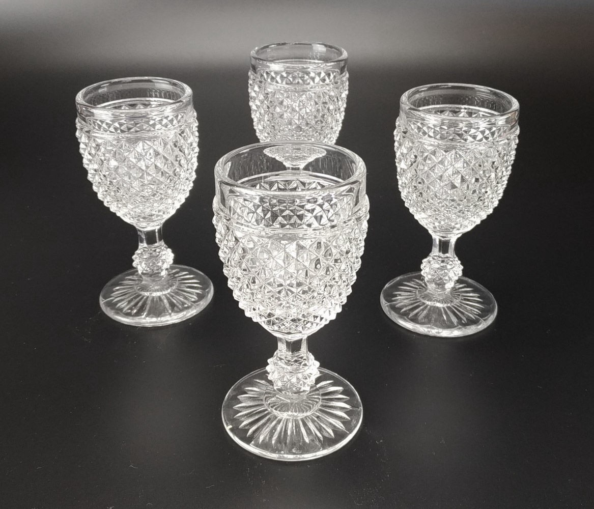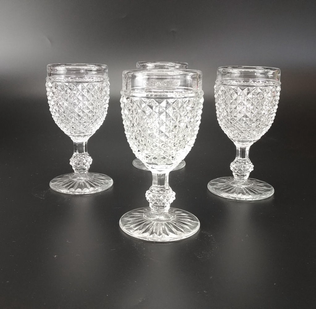 4 TAÇAS DE LICOR EM BICO DE JACA TRANSPARENTE. ALT 10CM. PERFEITO ESTADO.
