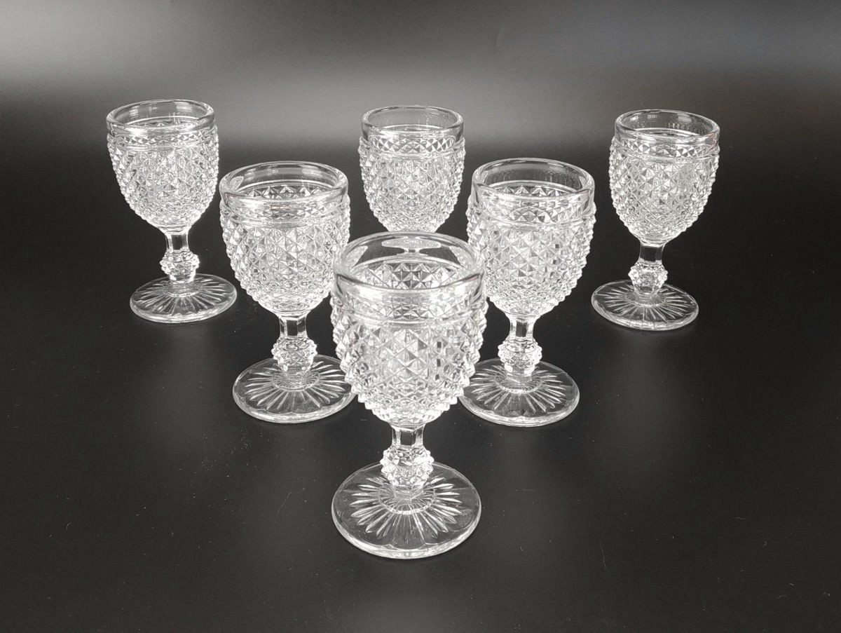 6 TAÇAS DE LICOR EM BICO DE JACA TRANSPARENTE. ALT 10CM. PERFEITO ESTADO.