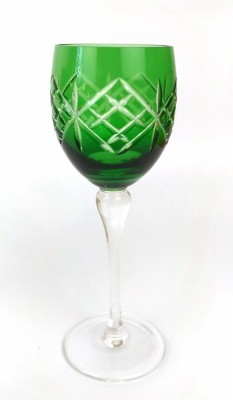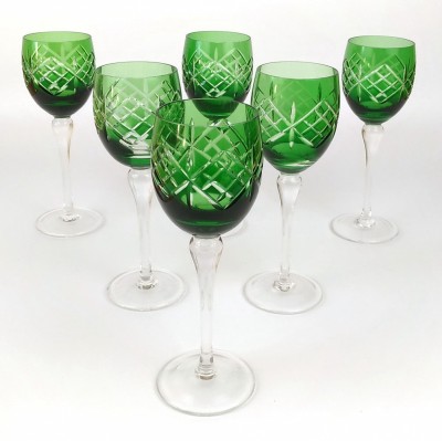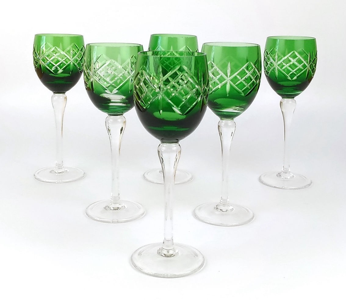 6 REFINADAS TAÇAS DE VINHO EM CRISTAL OVERLAY VERDE. ALT 20,5CM. PERFEITO ESTADO.